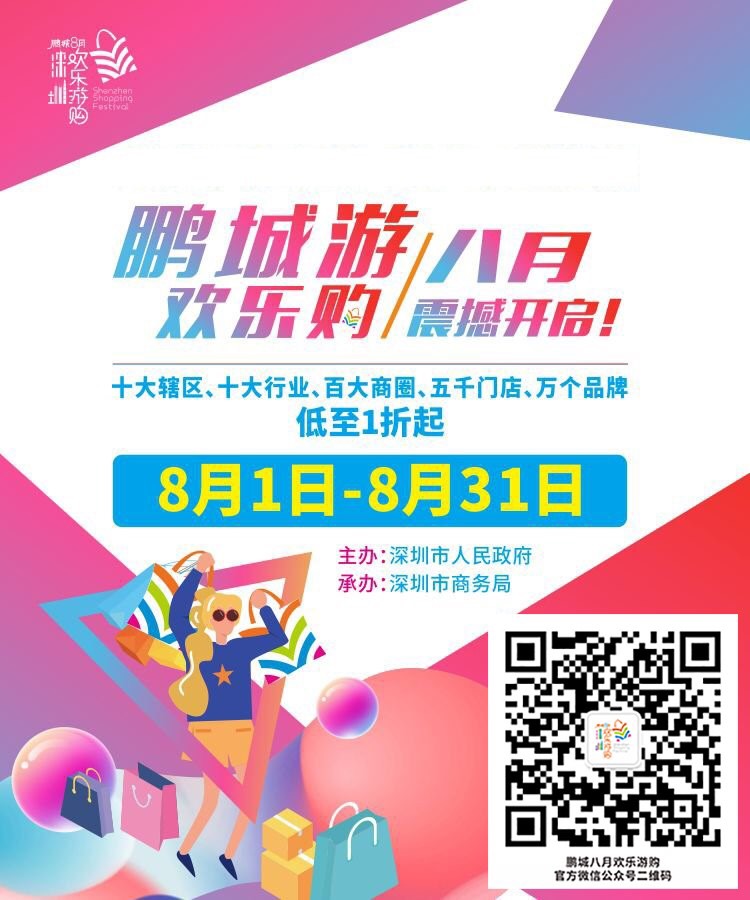 8月1日在福田區(qū)大中華國際交易廣場(chǎng)大堂舉辦開幕式,啟動(dòng)2019“鵬城八月歡樂游購”活動(dòng)